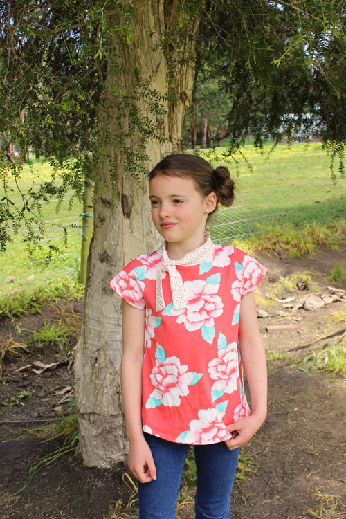 Today I am haring an Issie top I made over the weekend with the new addition of the Rose collar! I really love this design by Mijke from Riddersenrozen. It makes the top look really elegant! When Mijke first showed me the design about ten days ago, I thought it was too close to my planned release date to include it in the pattern, and I hoped to release in a couple of weeks as a free add on. But when I sewed one up, I knew it had to make it to the pattern!! Isn't it pretty? It's also really easy to make and really only adds another five minutes to the contruction of the top. We named the collar after Mijke's lovely daughter, Rose.